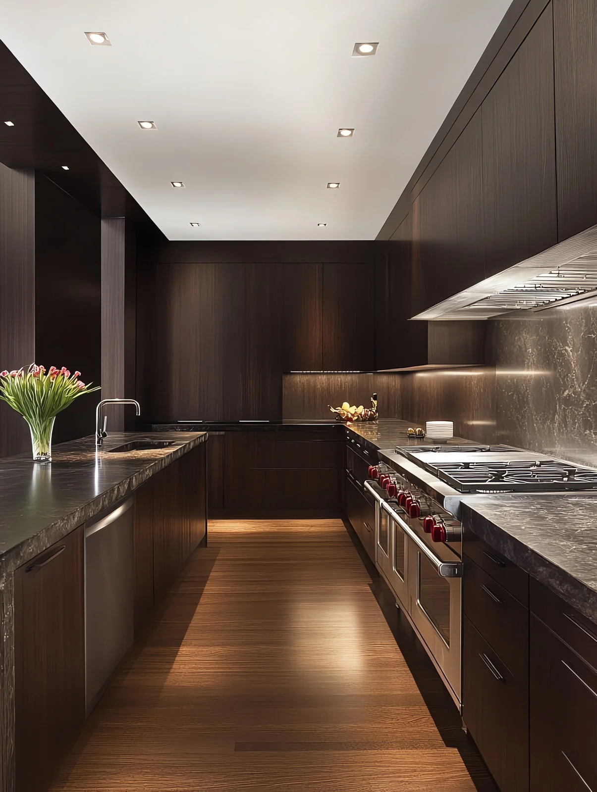 Χρησιμοποιούμε επιλεγμένα είδη ξυλείας — όπως δρυς, ιρόκο, δρυς καπνιστός και teak — καθώς και εξειδικευμένες μεθόδους επεξεργασίας και φινιρίσματος. Έτσι, κάθε έργο συνδυάζει την αντοχή, την αισθητική τελειότητα και τη φυσική ομορφιά του ξύλου.
